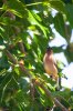 Today, Looney1 came out back with me and the dogs. Looney2 voiced displeasure from inside the house, but when I reminded him that he doesn't like it when he's outside, he quieted down. While outside, the local squirrel decided he was going to snoop around the yard. But Tornado-dog was on guard Squirrel decided he'd go find something else to do. A mockingbird came through But had no interesting calls to make. Last year one croaked like a frog all summer. And we had a new visitor A cedar waxwing. He has a fancy mask and a fine looking coat.