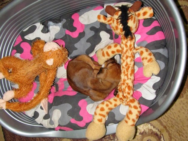 I forgot to celebrate Tikva's birthday, but not her Gotcha Day, which was totally unreal. First being told "Come and get your puppy now" with the unspoken "or else". Bringing her home and telephoning Ram and saying "Help - I have a 3-week-old tiny puppy and I need something to feed her" - and he sent someone with a tin of puppy replacement milk and some tiny bottles. Much too young and oh so tiny, but I had no choice and she not only survived but she thrived. The monkey and the giraffe were Pereg's, who had a number of those monkeys and frequently used to walk around with one or two in her mouth. And take some to bed! They are still here - sitting on top of the back of the couch - propped up against the wall just below Pereg's memorial picture. My little Tikva. My Hope.