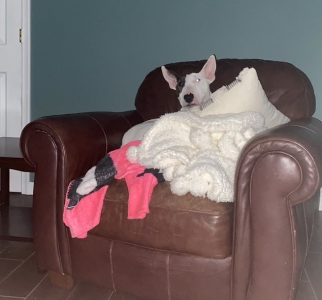I thought you had an Entlebucher Sennenhund - that is what you say on your profile - not a Bull Terrier?