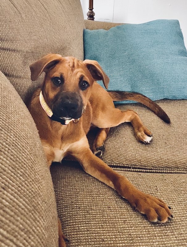 Hello I just adopted a dog. She was a stray in Texas. She is very sweet and follows me everywhere. She listens very well on walks and shy to new strangers. She does not like to be alone. I would love to train her. She is 3-4 months old and about 18lbs. They labeled her as boxer mix. What do you think she is? I am thinking black mouth cur, Rhodesian and boxer?