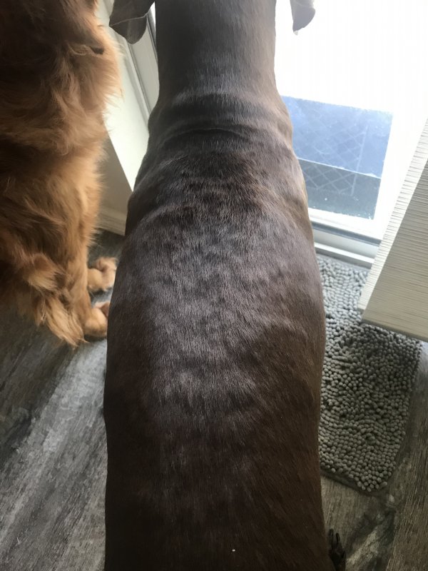 Has anyone ever experienced this with their gsp ? I don’t feel anything but I can see that is skin/fur doesn’t look like it normally does. I just noticed this yesterday it kind of came out of no where. His diet hasn’t been changed at all.