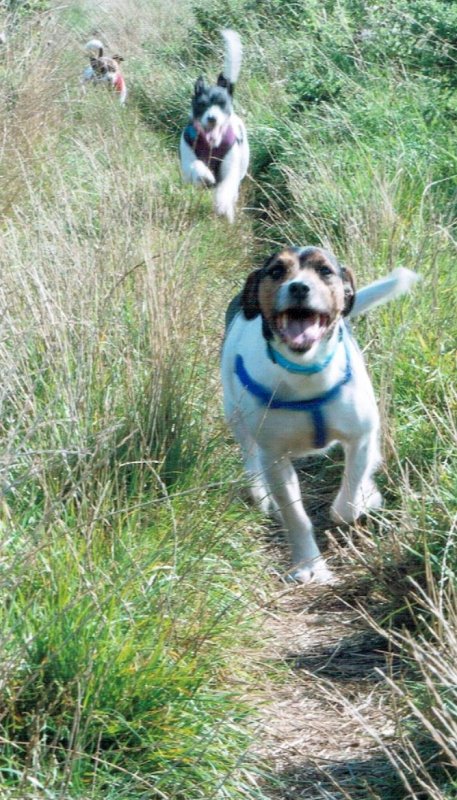 Well, Saint Eddie has featured quite a bit, so here is my 121/2 year old Tweed killing her rope ball, She started in Obedience at 7, winning out of pre Beginners, and qualified CD Ex in Working Trials at 91/2 . She is tough and very naughty, having lived on the streets as a youngster. She will still 'do a runner' if she gets the chance.