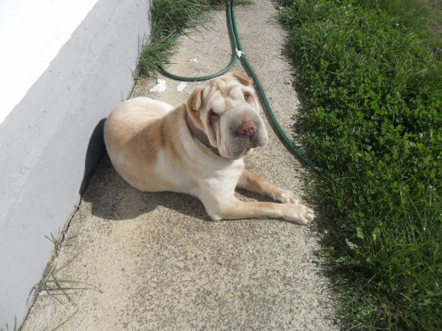 A recent one of the Princess Pei Face sunning herself. And Gwylim the Conquerer contemplating what mischief he's going to get up to next!